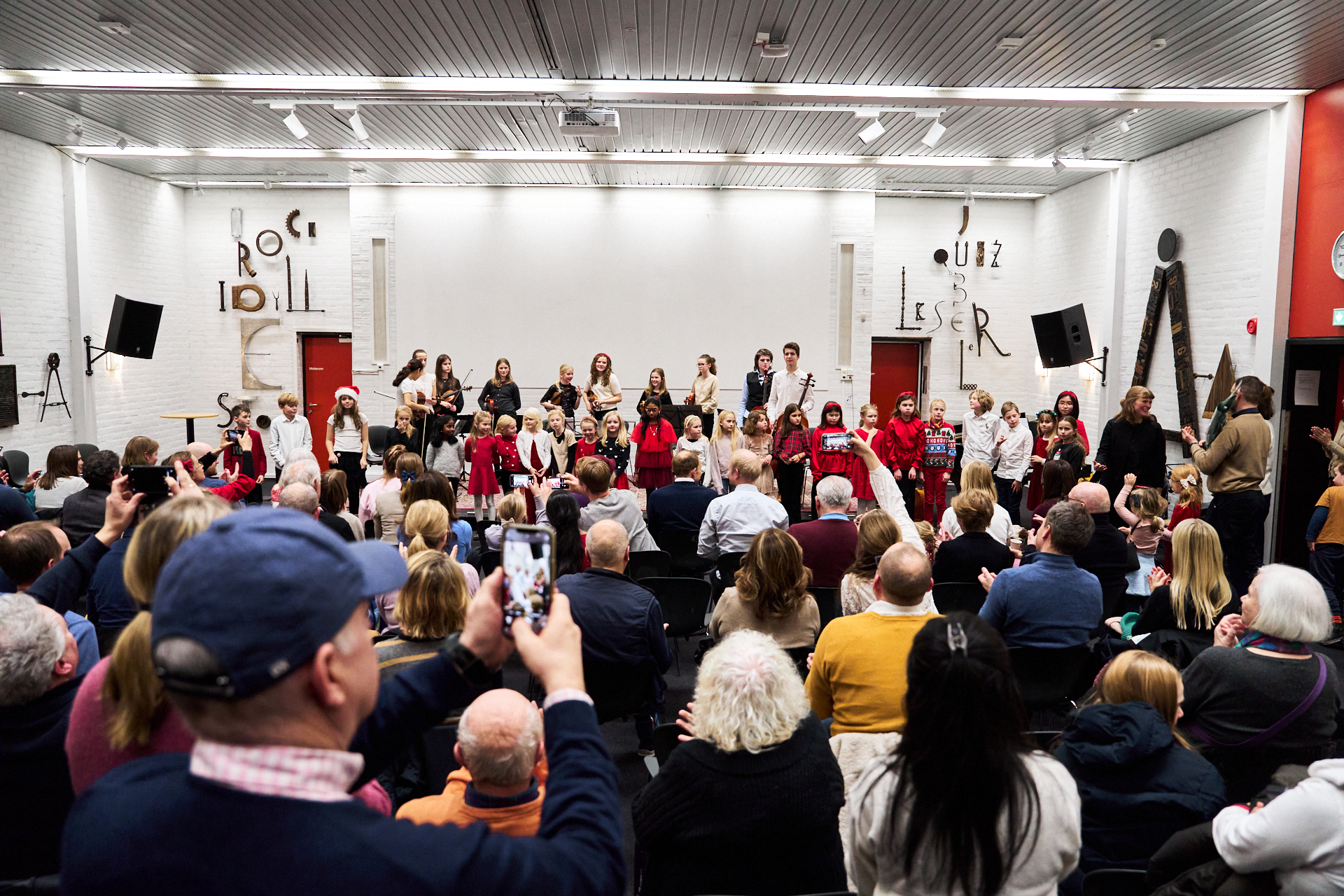 Orkesterene øver hver tirsdag på musikkrommet til Jar Skole:
